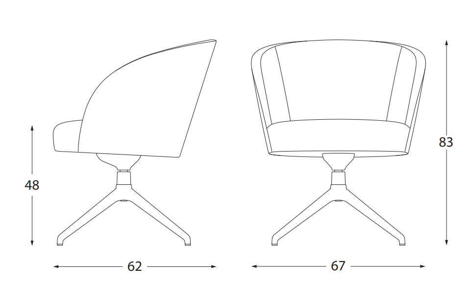 Grosser Sessel, Schale aus Formschaumstoff. Auf Gestell gepolstert. Gegurteter Sitz. Mit drehbarem Spinnenkreuz aus Aluminium.