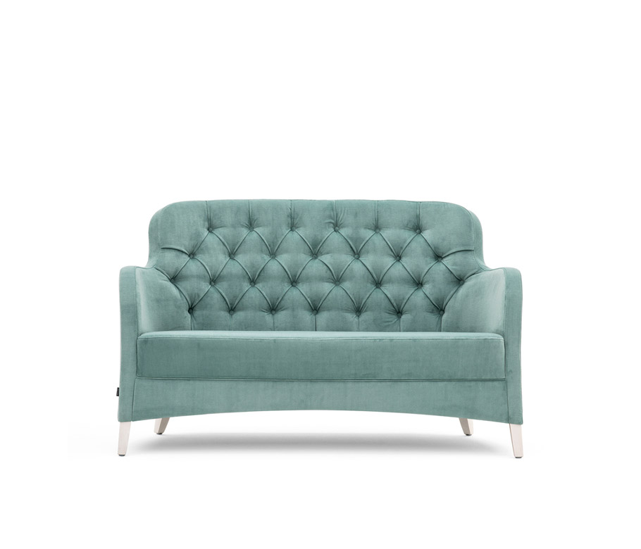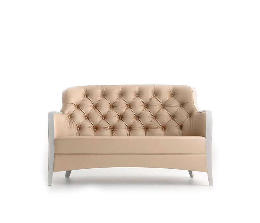 Poltrona Lounge, fusto in legno massiccio. Sedile e schienale tappezzato su fusto. Schienale anteriore con tappezzeria capitonné. Braccioli in legno. Senza dettaglio di bottoni sullo schienale esterno ma con ZIPP. Dettaglio di bordini su braccioli interni e esterni.